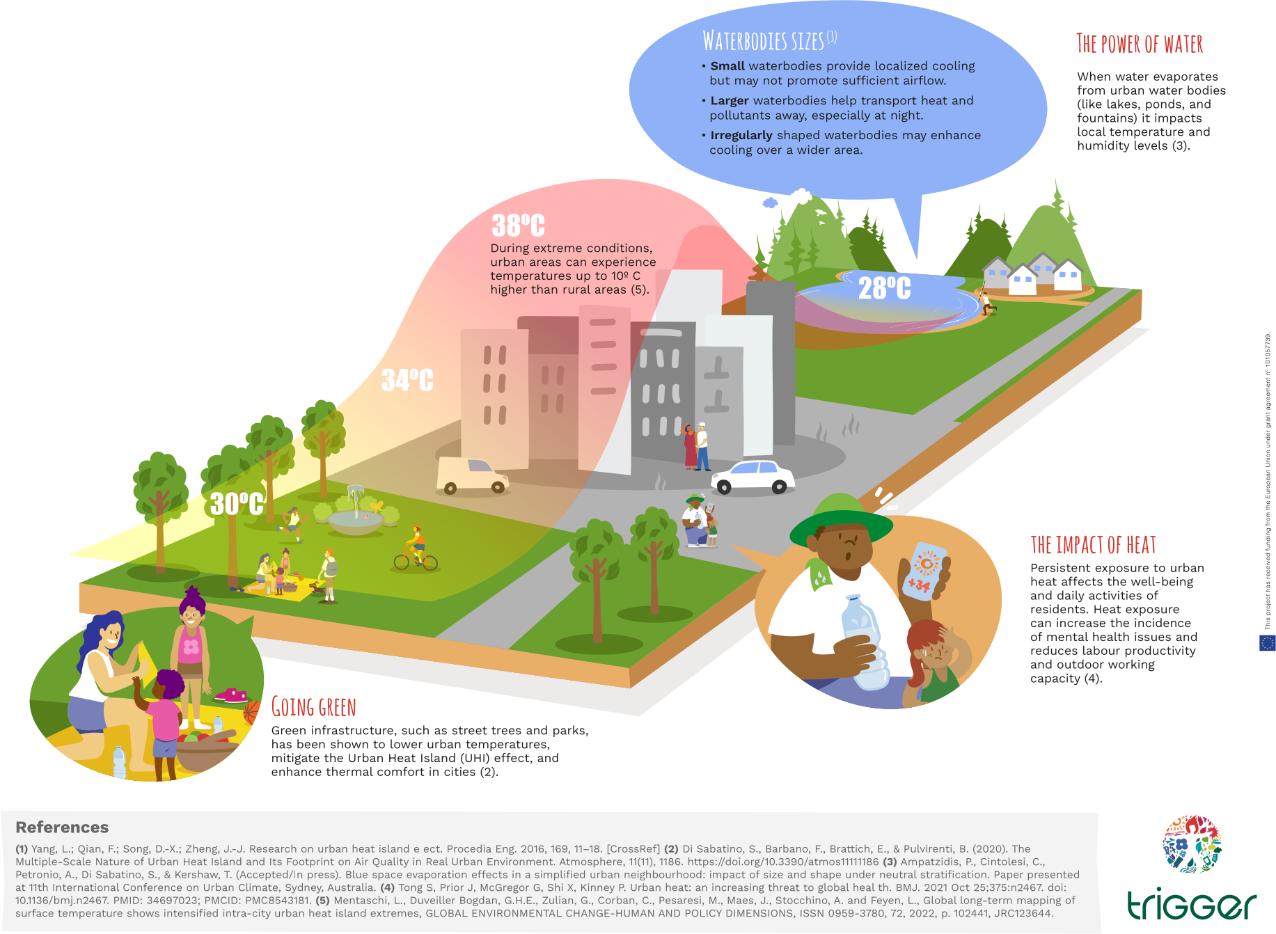 Click on each of the climate hazards—air pollution, heatwaves, floods, and wildfires—to discover how they transform and challenge urban life. As you navigate through the hazards, you’ll uncover a variety of educational resources designed to help you learn more about the science behind each phenomenon, their effects on people and their health.